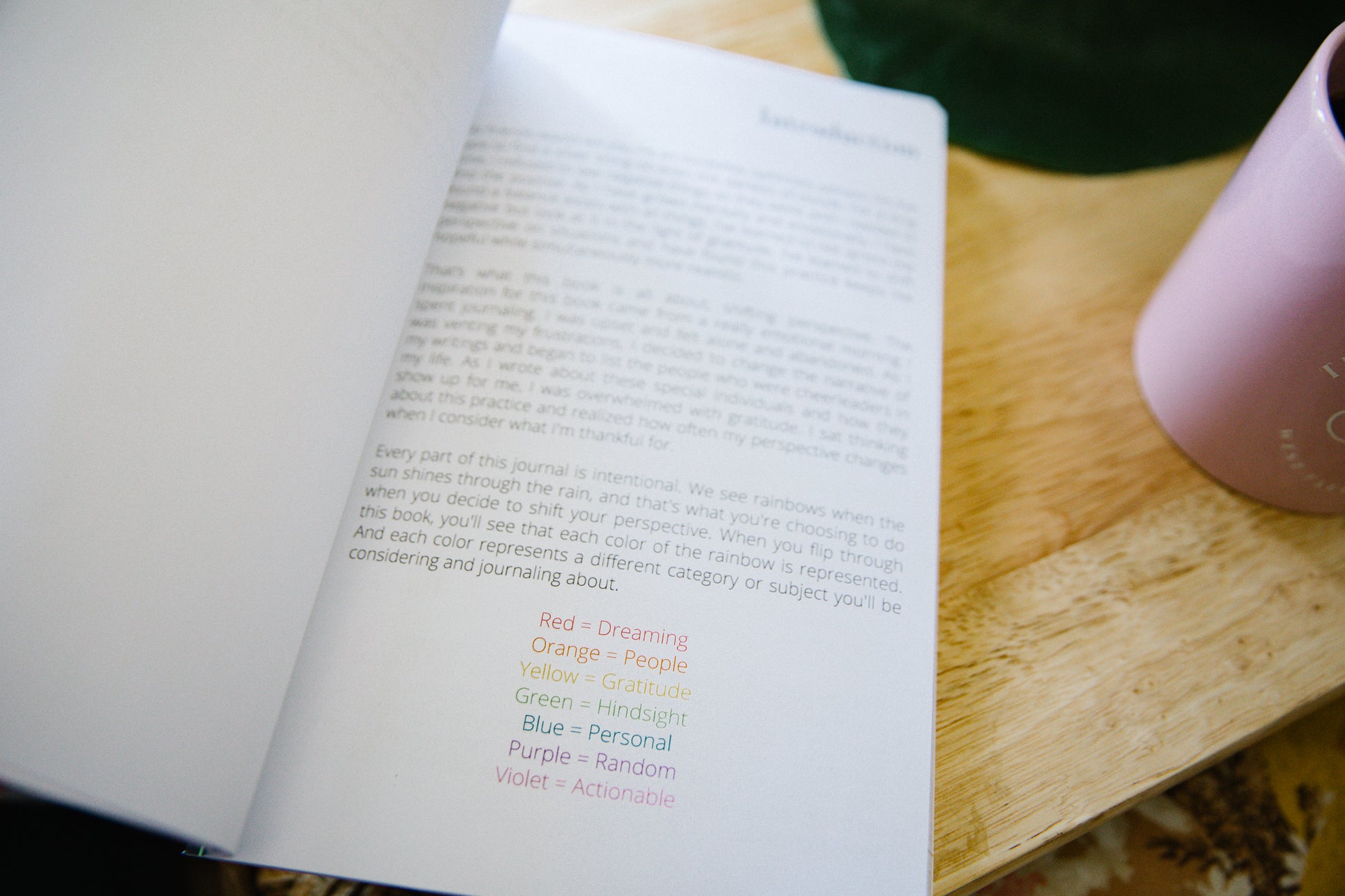 Dive into a transformative 52-week journey with our color-coded journal, tailored to shift your perspective. Each prompt, categorized into Dreaming, People, Gratitude, Hindsight, Personal, Random, and Actionable, sits on dot-ruled pages, inviting introspection and proactive steps. Every entry offers an added nudge, either for deeper insight or a call to action.