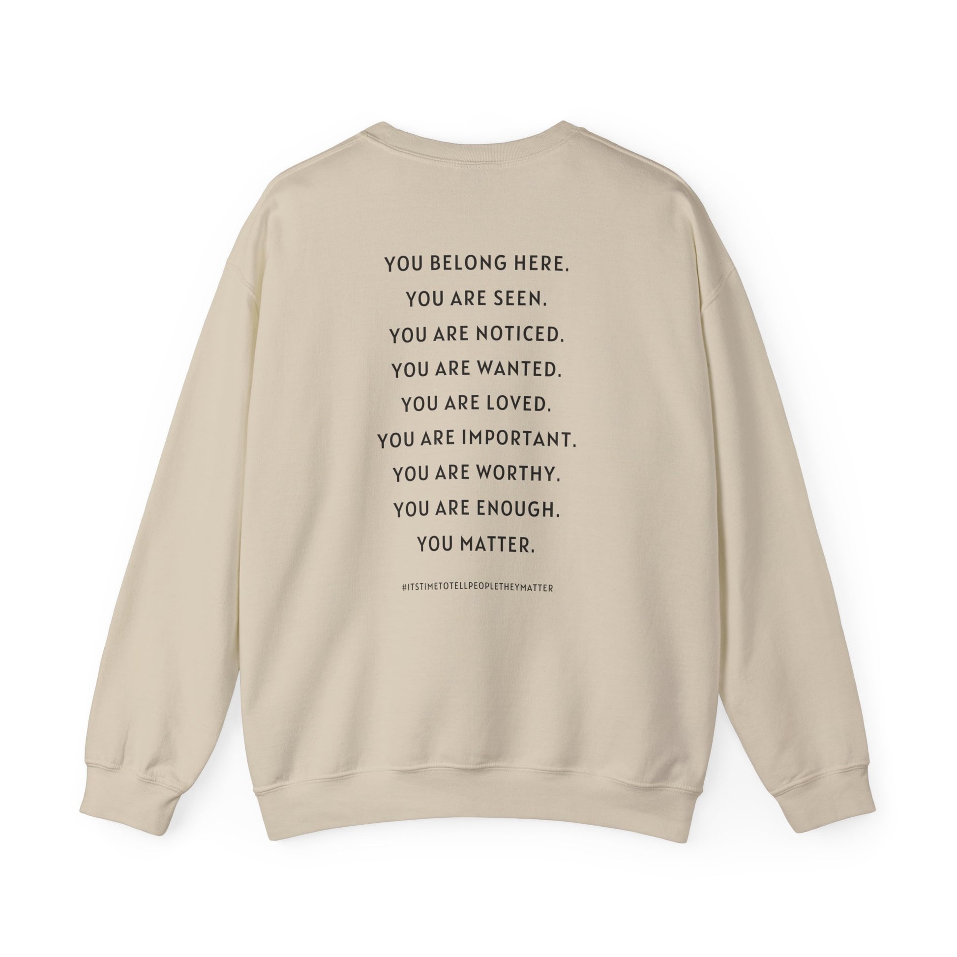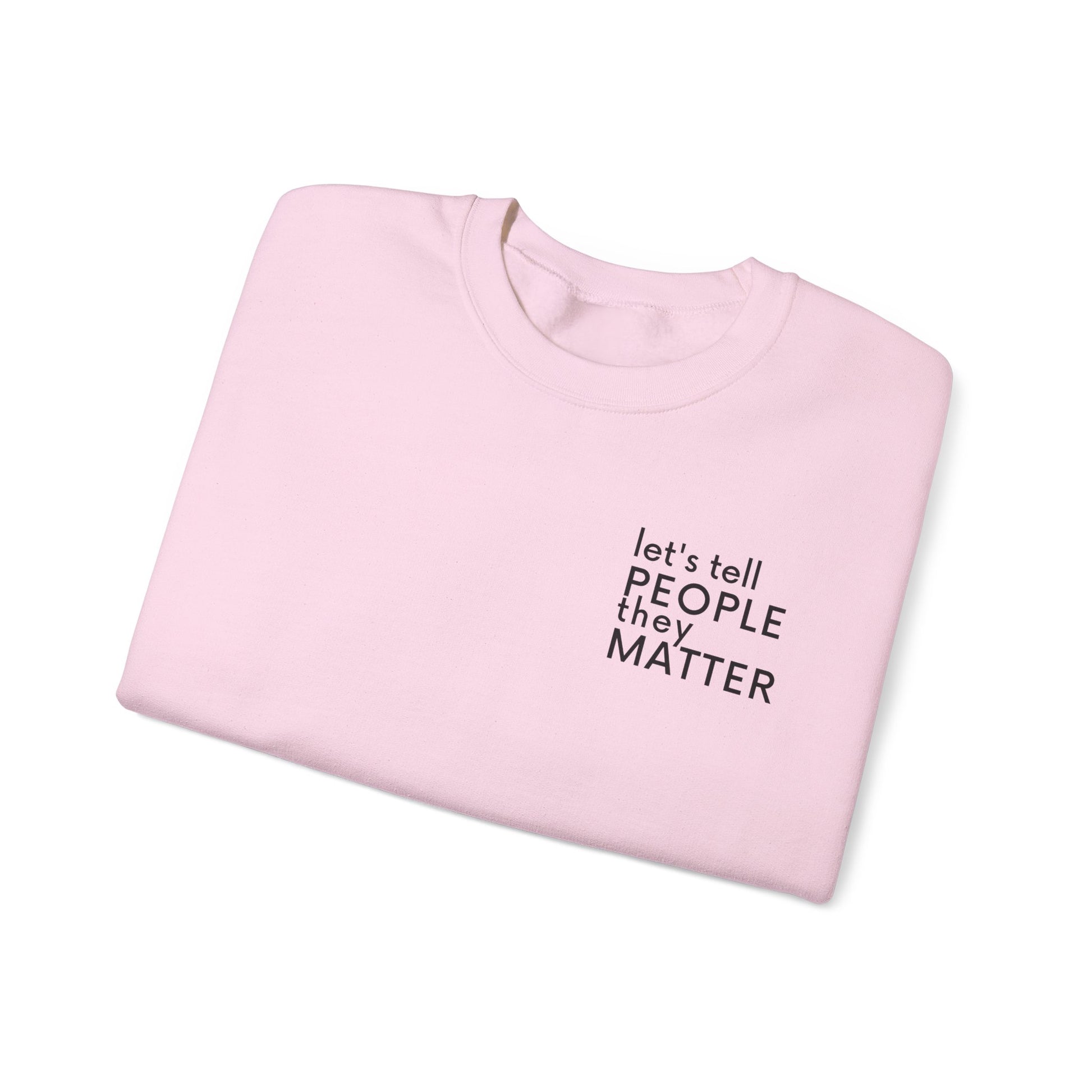 Perfect for everyday wear, quiet reflection, or loud impact — this sweatshirt invites you to live what it says: let’s tell people they matter.