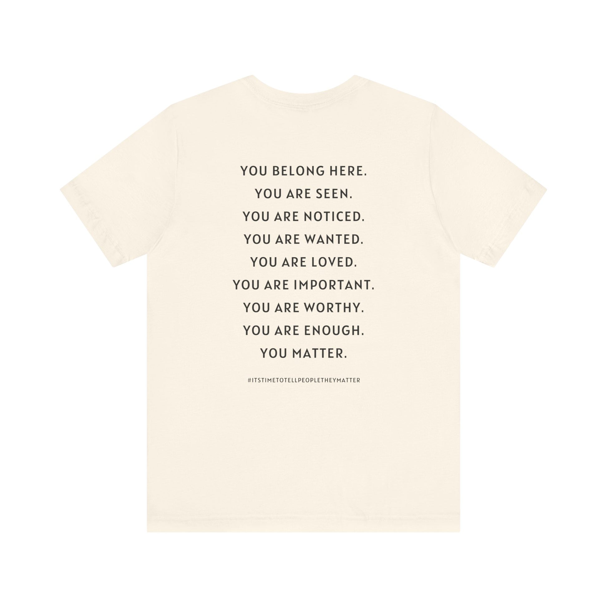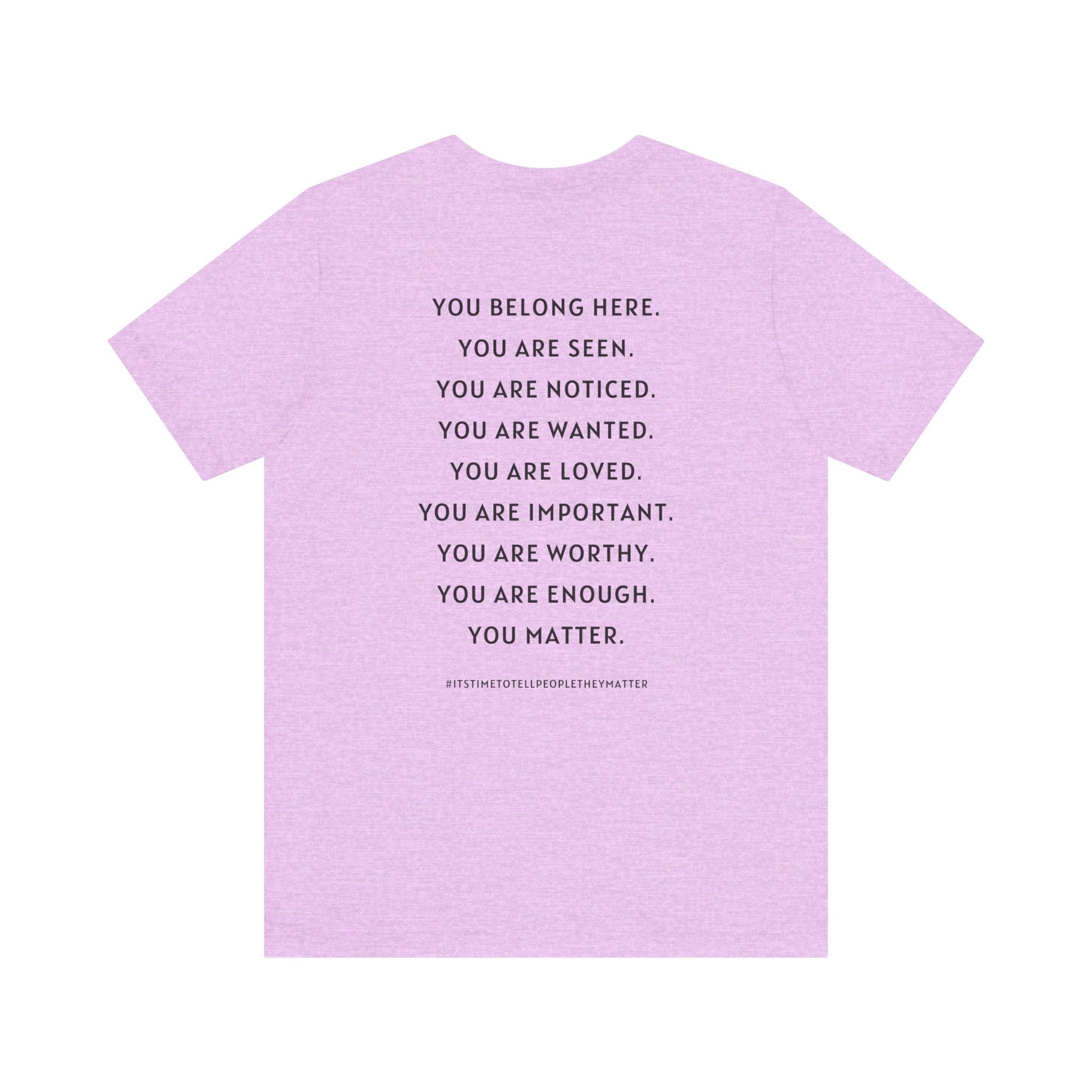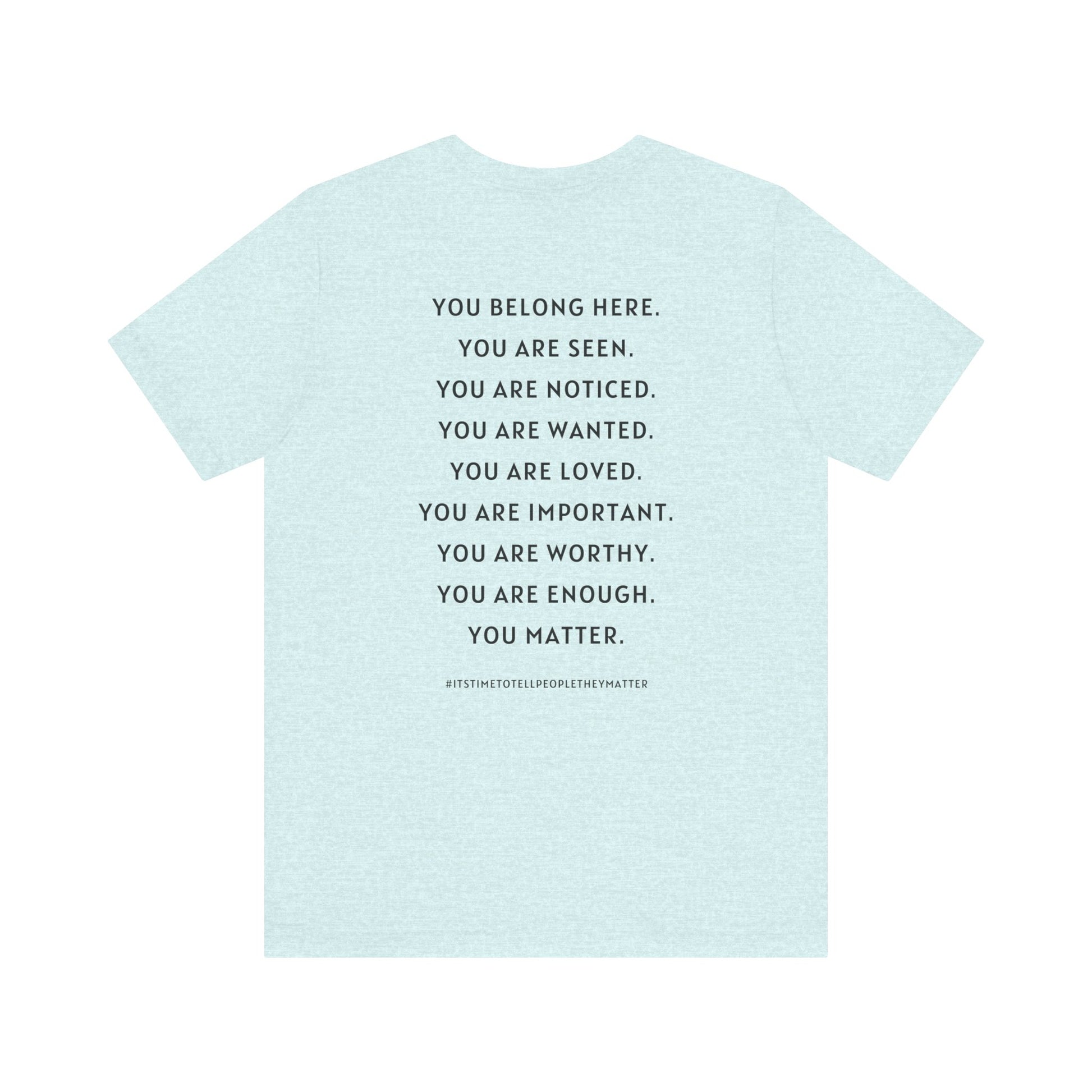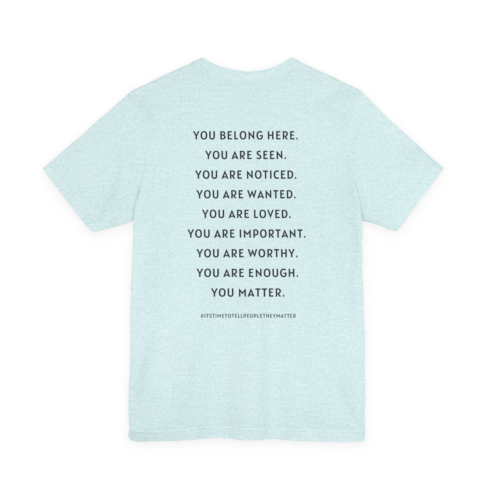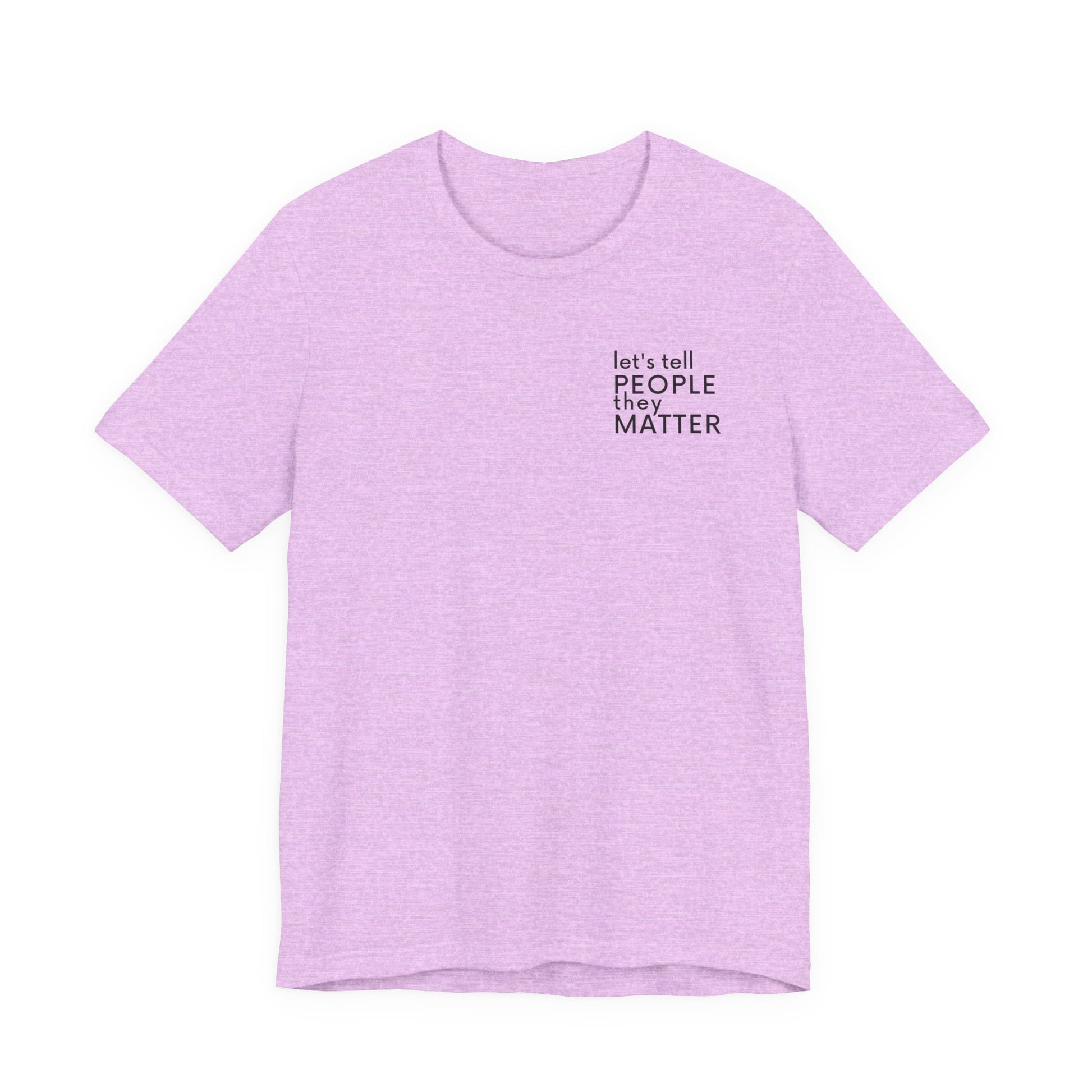 Whether you’re out with friends, running errands, or reflecting in quiet moments, this tee invites you to live what it says — let’s tell people they matter.