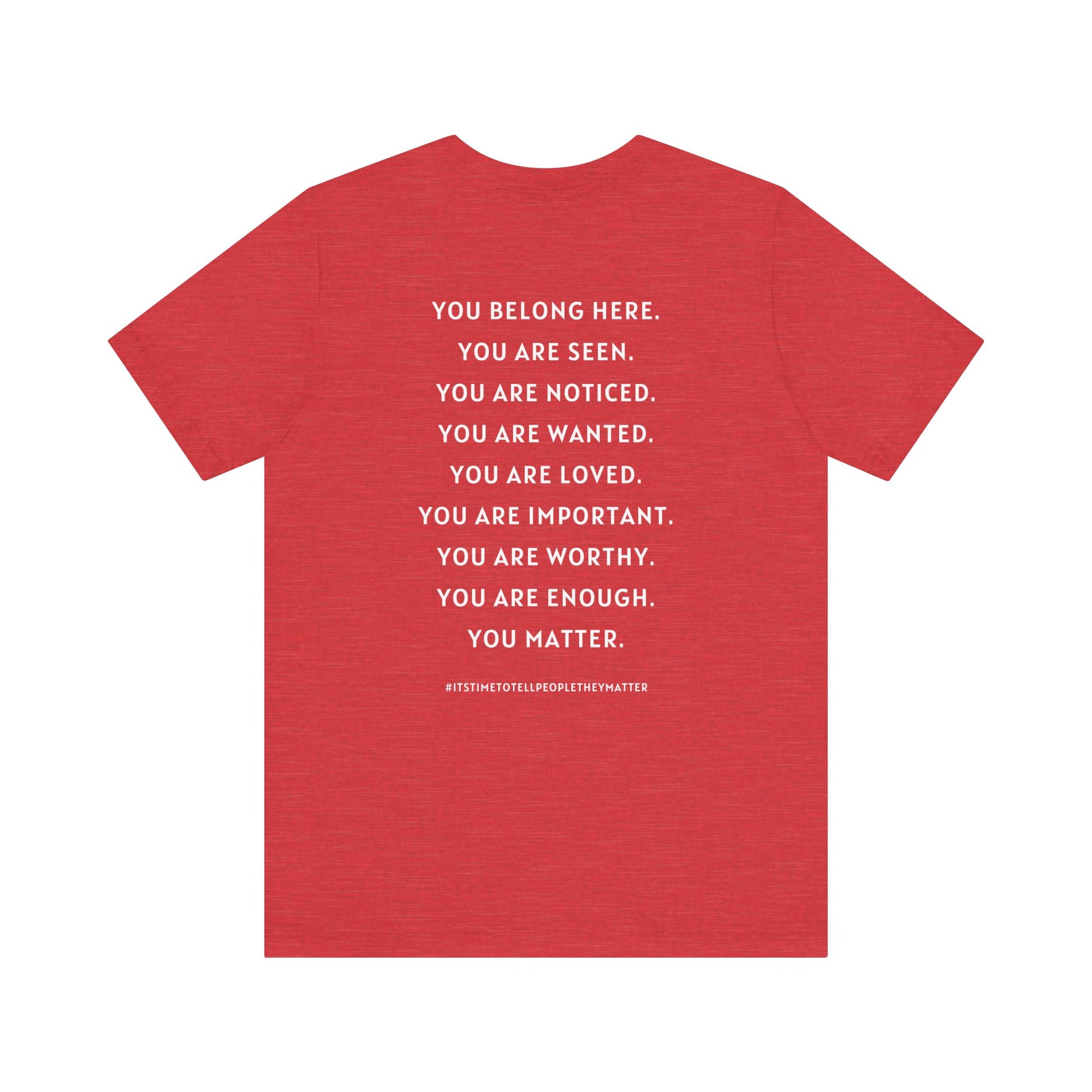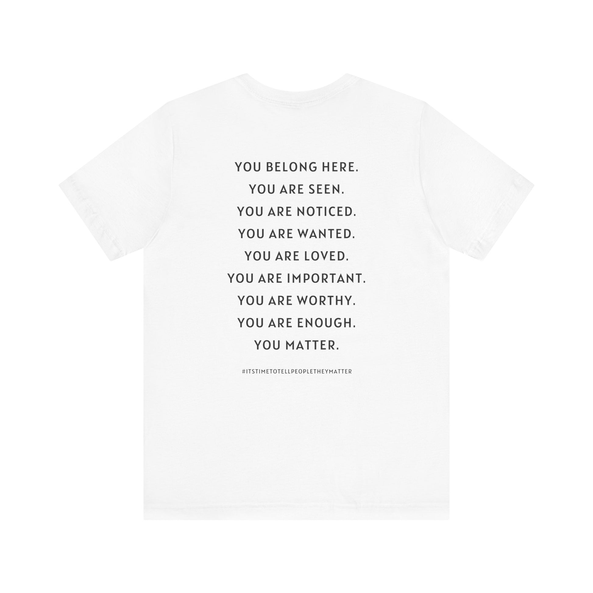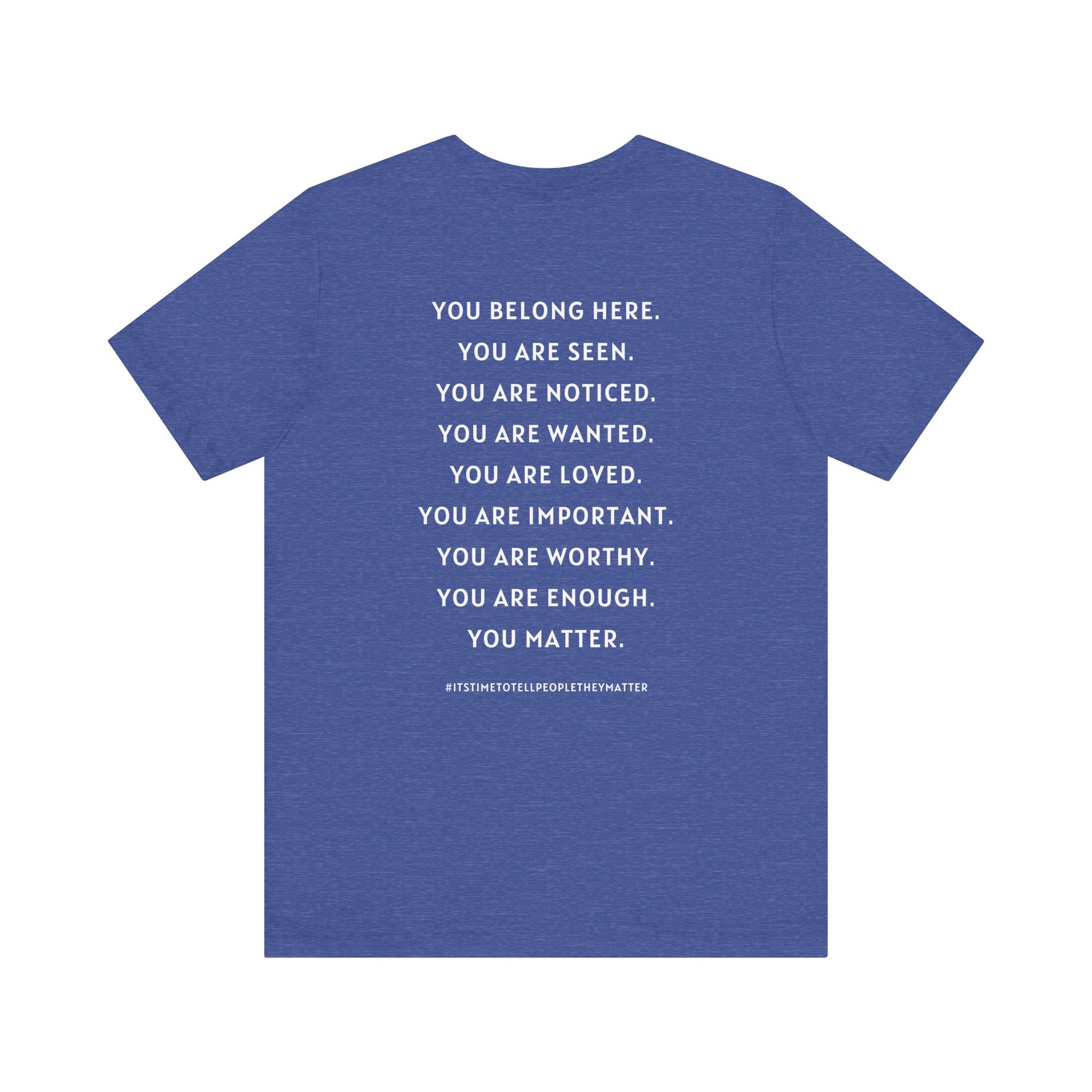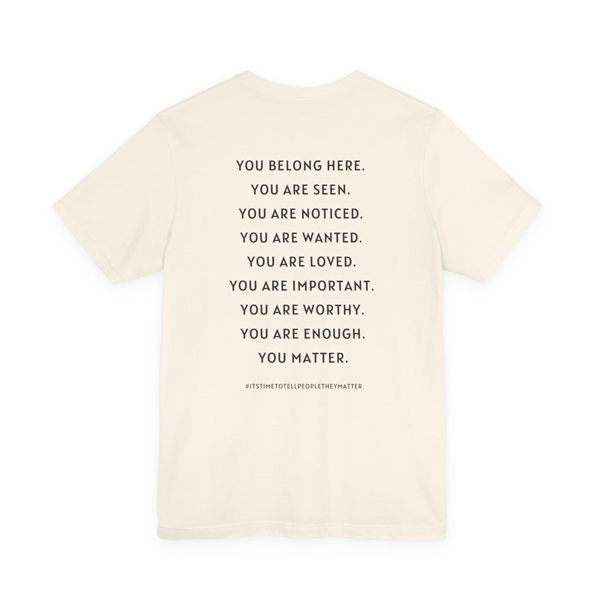 Whether you’re out with friends, running errands, or reflecting in quiet moments, this tee invites you to live what it says — let’s tell people they matter.