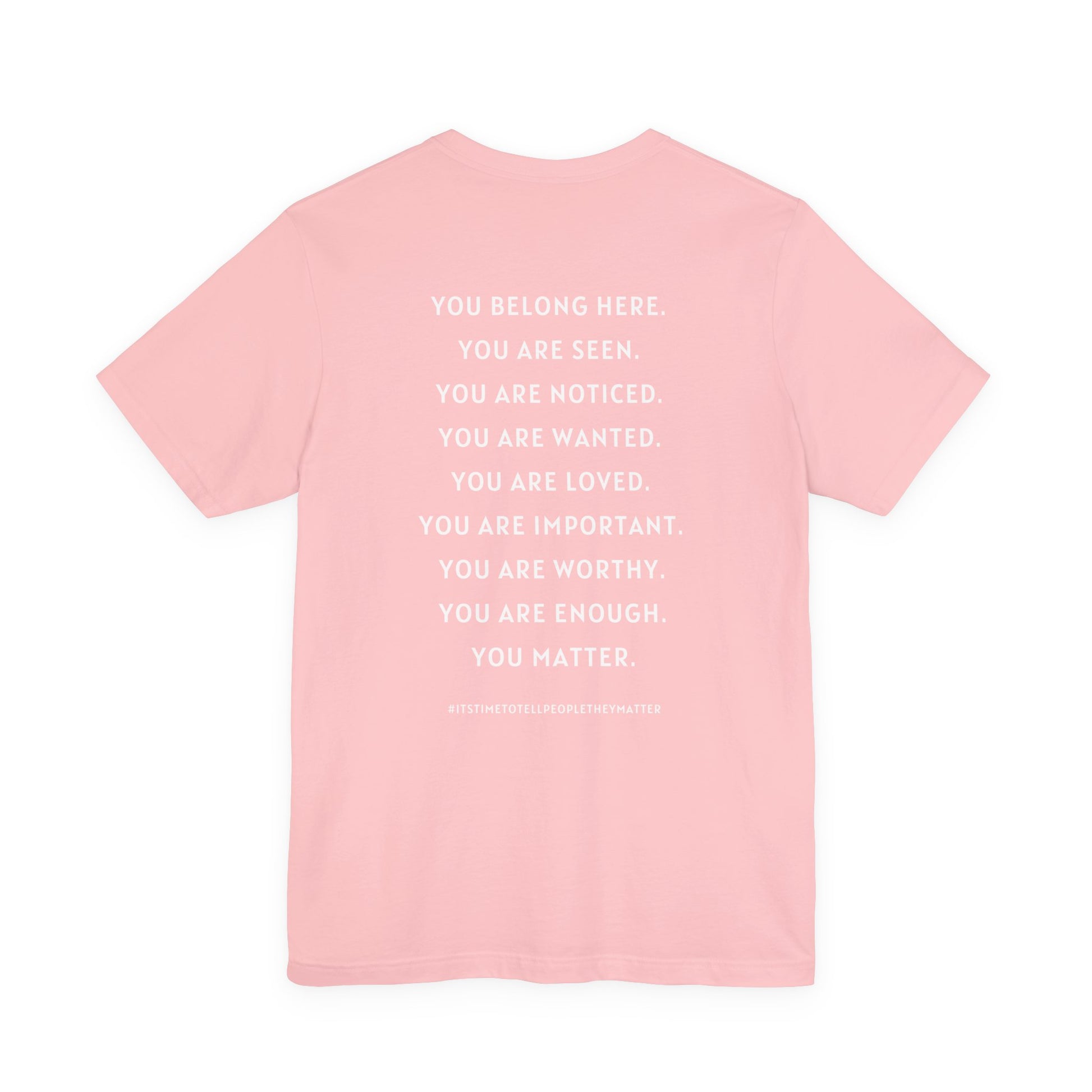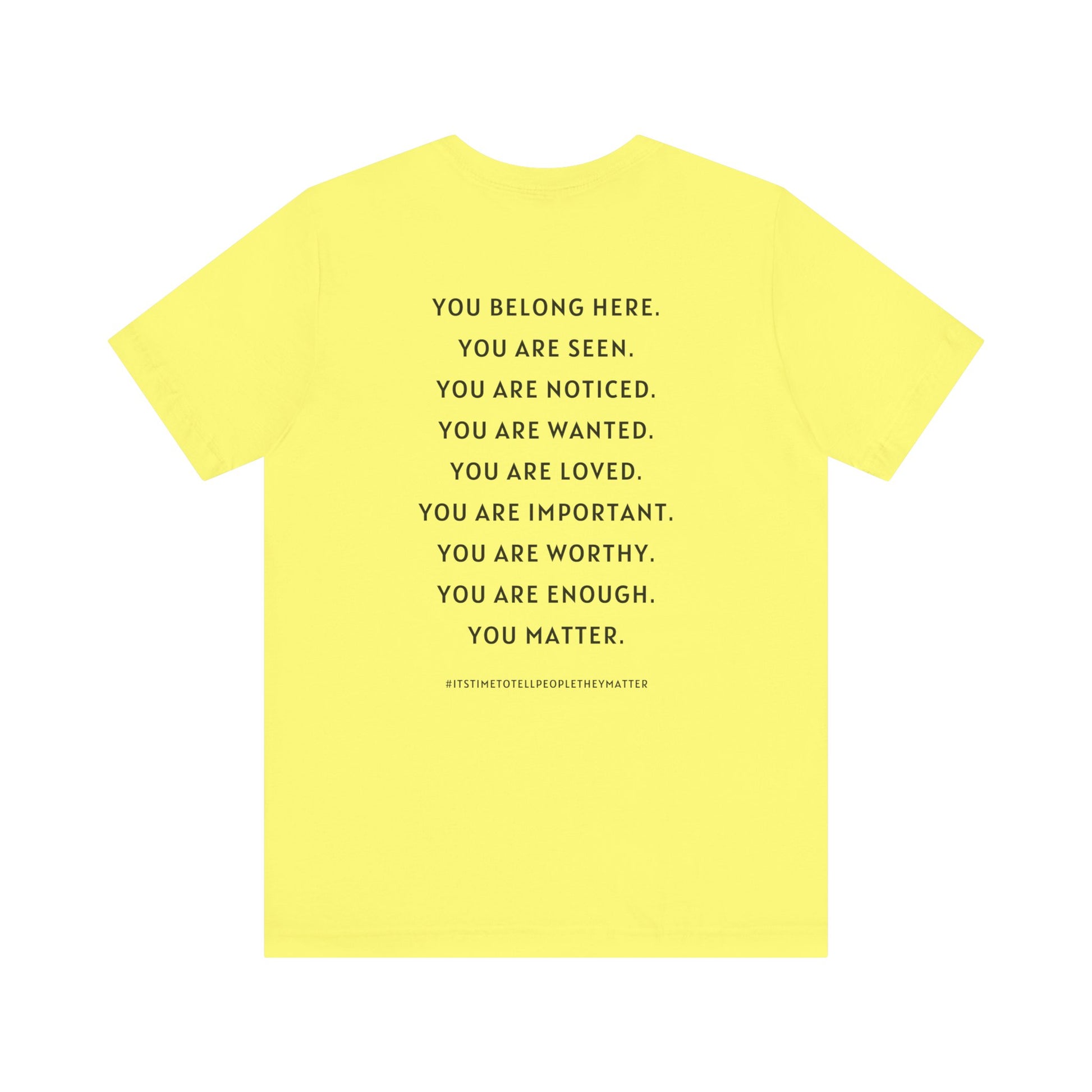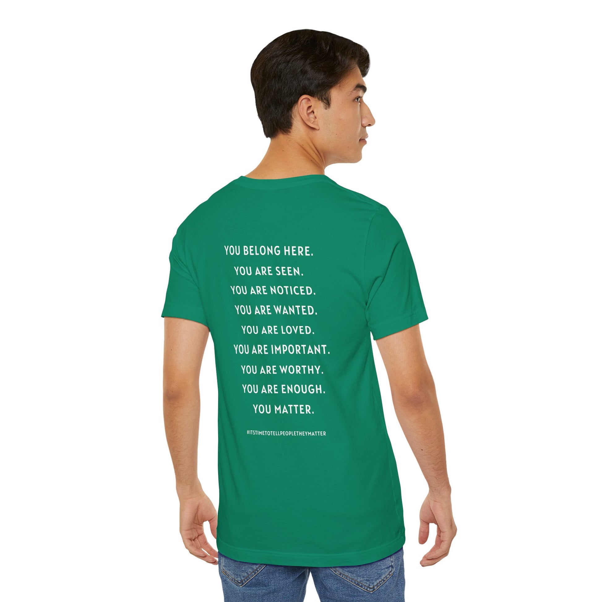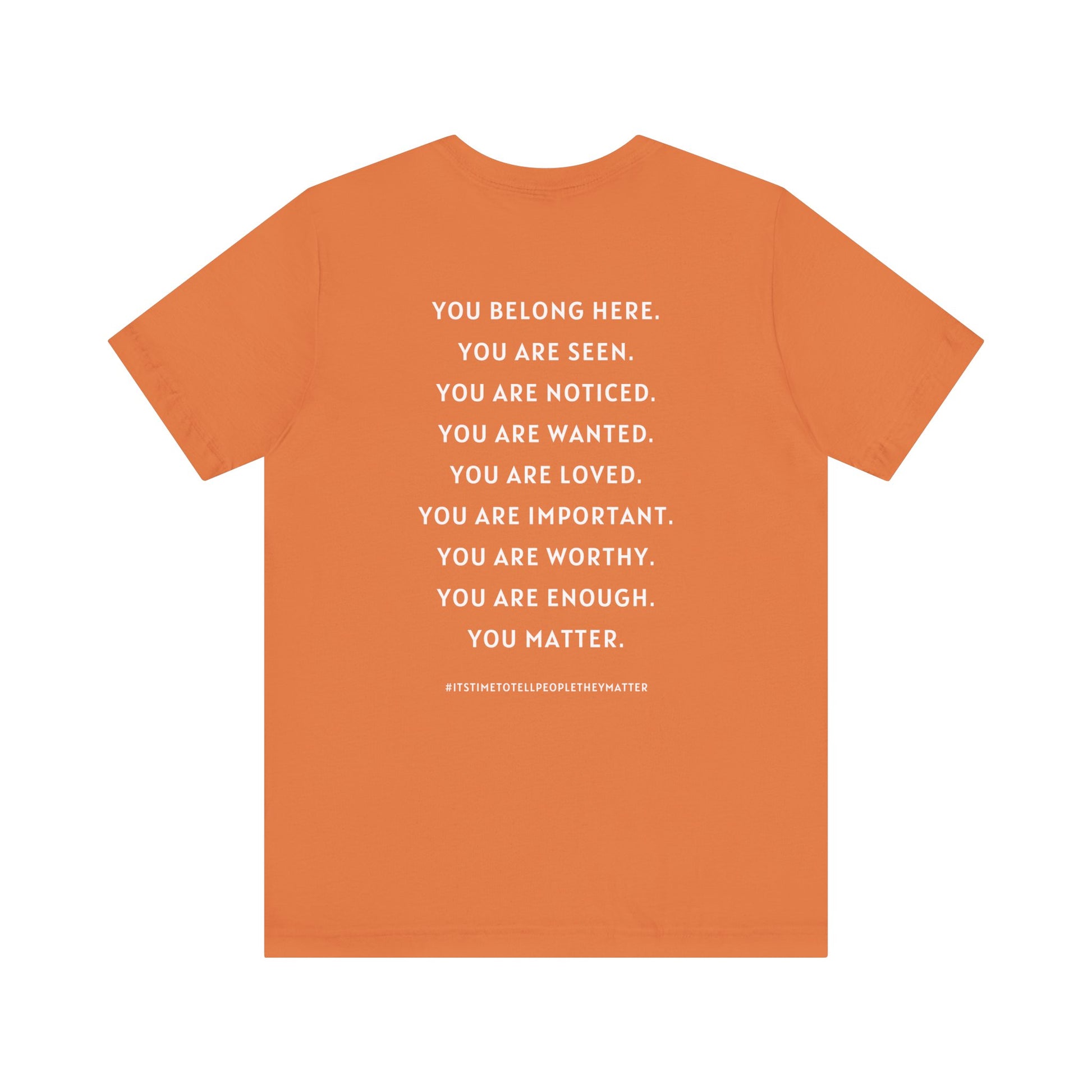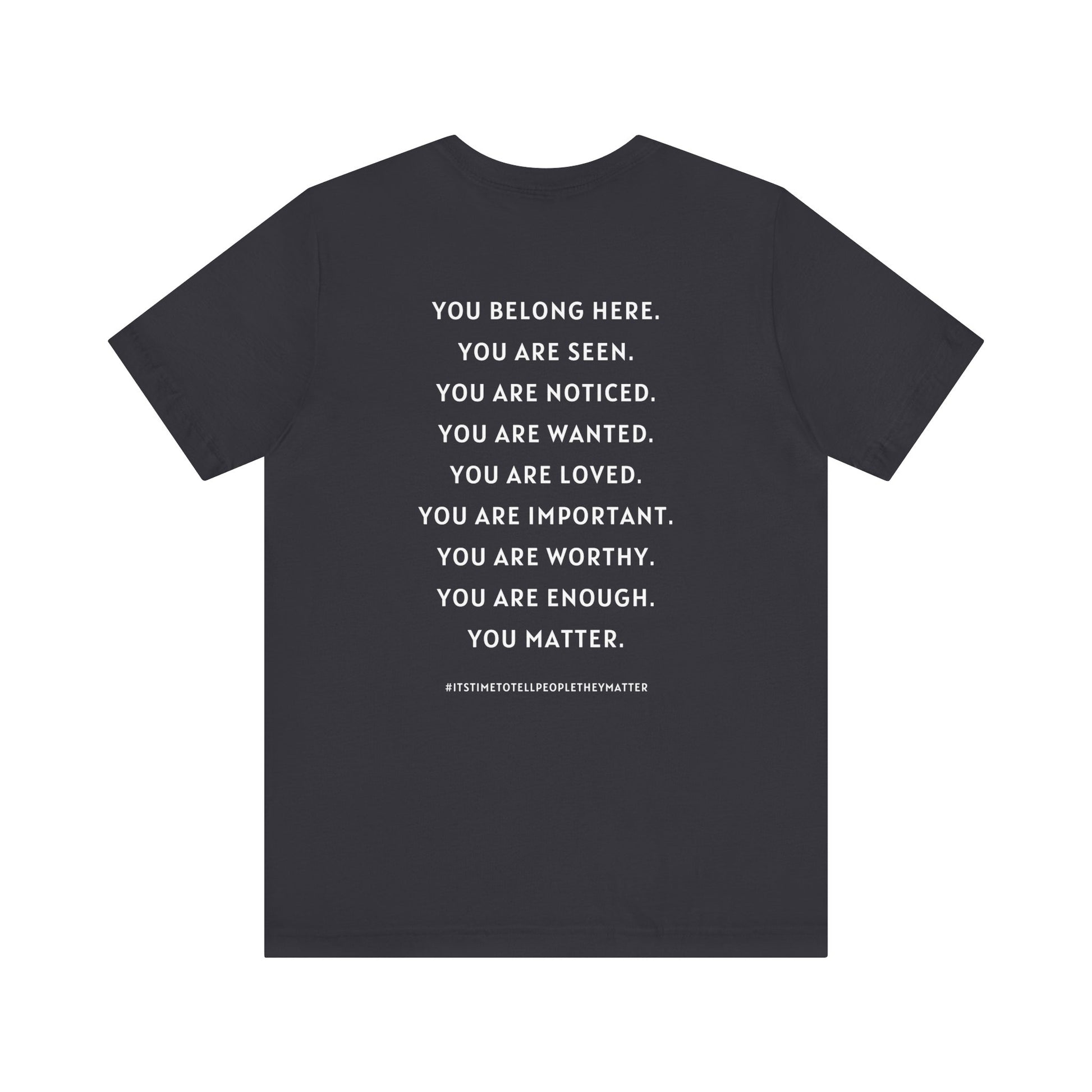 Whether you’re out with friends, running errands, or reflecting in quiet moments, this tee invites you to live what it says — let’s tell people they matter.